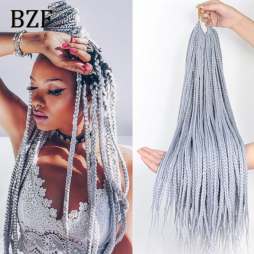 Grey 3x Box Braids Synthetic Hair 24 Crochet Braiding Hair Extensions Goddess Blue Braid Pre Looped Ombre Colored For Women Synthetic Braiding Hair For Black Aliexpress